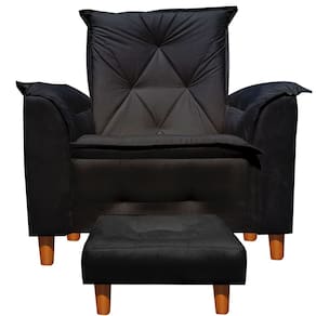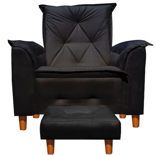 Poltrona De Amamentação Celine Com Puff Suede Preto - Preto