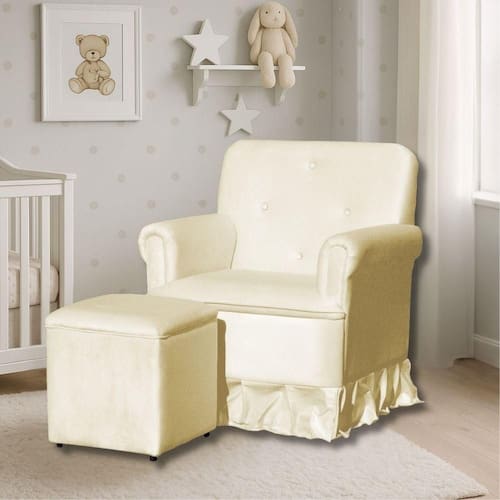 Poltrona De Amamentação Com Balanço E Puff Lara Veludo Bege