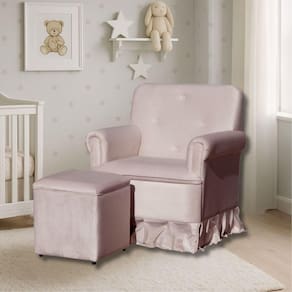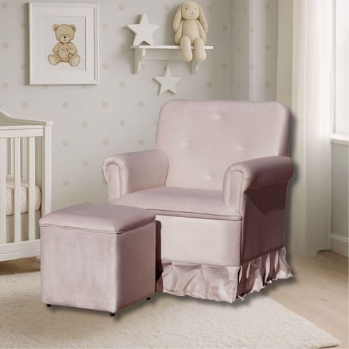 Poltrona De Amamentação Com Balanço E Puff Lara Veludo Cor: Veludo Rosê