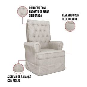 A Poltrona de Amamentação é um móvel indispensável na vida da mamãe e do recém-nascido. Geralmente nos iros meses, os horários de amamentação são mais frequentes, tendo que ficar de duas ou de três em três horas na mesma posição, não é mesmo? Mas, será que é preciso mesmo ter uma poltrona? Não é apenas luxo? Vale a pena lembrar que, ter uma poltrona, vai além da decoração apenas, é uma peça indispensável que garante muito mais segurança e conforto, tanto para o bebê, quanto para a mãe caso pegue no sono durante a amamentação. Por isso, oferecemos o que há de melhor! Olha que lindeza a Poltrona de Amamentação Laura! Com estofamento de qualidade, essa poltrona possui encosto de fibra, revestida com veludo, sistema de balanço com molas. Produzida em madeira maciça, com encosto alto, sua ergonomia foi desenvolvida pensando no conforto, bem estar sem sobrecarregar a coluna. Seu encosto/assento é feito com espumas de alta densidade D28 e percinta elástica. Os braços são do tamanho ideal para dar apoio à mamãe enquanto segura o bebê. Contém também um revestimento de excelente qualidade em Linho, um tecido de toque suave e super fácil de limpar! E para complementar essa linda peça, contém um puff, que além de servir de apoio para os pés, ajuda a combater o inchaço das pernas. Escolha sua Poltrona de Amamentação Laura e garanta o melhor proveito do momento de amamentação com seu filho(a).