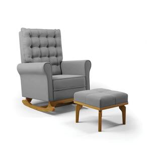 Poltrona De Amamentação Com Balanço E Puff Manu Veludo Base De Madeira - D`rossi Cor Cinza