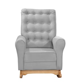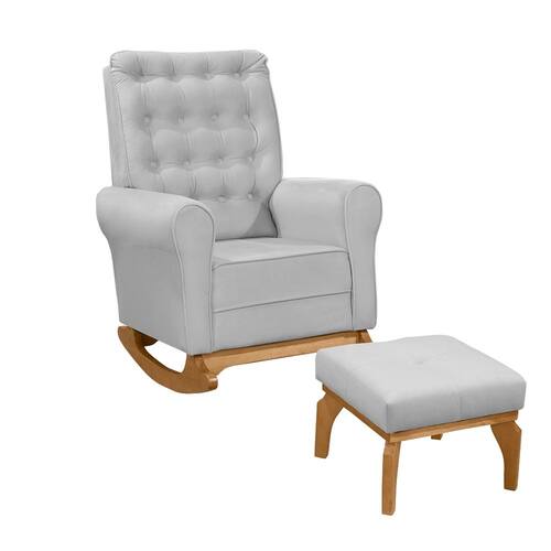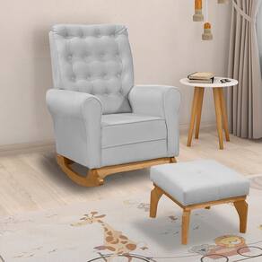 Poltrona de Amamentação com Balanço e Puff Thaila Veludo Cinza M13 - D`Rossi