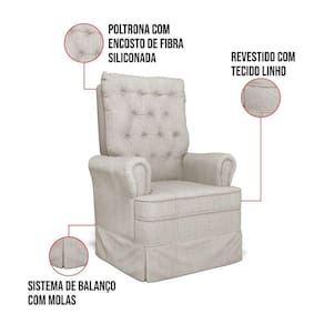 Poltrona De Amamentação Com Balanço Laura Linho Base De Madeira - D`rossi Cor Prata
