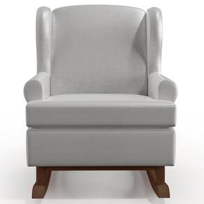 Características: Estrutura em madeira de pinus e eucalipto de reflorestamento, com imunização contra mofo, cupim e microrganismos. Revestimento em Facto Cinza Metalizado de alta qualidade. Encosto fixo com percintas elásticas, espuma D-23 e tratamento antimofo. Assento com espuma D-20, tratamento antimofo e almofada solta. Sustentação com percintas elásticas de alta resistência. Base com pés em formato de canoa e balanço suave. Peso suportado: Até 100 kg.