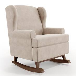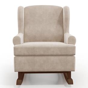 Características: Estrutura em madeira de pinus e eucalipto de reflorestamento, com imunização contra mofo, cupim e microrganismos; Revestimento em Suede Bege de alta qualidade; Encosto fixo com percintas elásticas, espuma D-23 e tratamento antimofo; Assento com espuma D-20, tratamento antimofo e almofada solta; Sustentação com percintas elásticas de alta resistência; Base com pés em formato de canoa e balanço suave; Peso suportado: Até 100 kg.