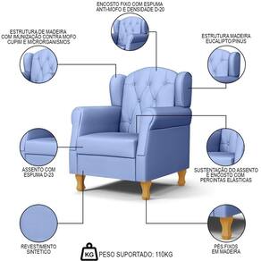 Conteúdo da Embalagem: 1 Poltrona, 4 Pés de Madeira.