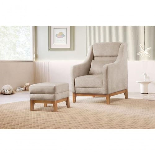 Poltrona De Amamentação Com Puff áquila linho Bege 103 - Blush
