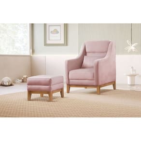 O conjunto de poltrona e puff Áquila proporciona conforto ergonômico tanto para a mãe quanto para o bebê durante o processo de amamentação, o que é fundamental para sessões prolongadas. Além disso, sua estrutura em madeira e percintas elásticas é projetada para promover uma postura adequada, ajudando a evitar desconfortos físicos. O estofamento de espuma D28 torna a amamentação mais agradável e relaxante, promovendo o vínculo entre mãe e bebê. Esses benefícios combinados fazem da poltrona de amamentação um investimento valioso, proporcionando conforto, praticidade e fortalecendo o elo afetivo entre eles. Acompanha Almofadas extras: 01 Acompanha Puff: Sim Almofada do assento: Fixa Almofada do encosto: Fixa Altura do assento até o chão: 44 cm Altura do Encosto: 57 cm Ambiente Principal: Quarto de Bebê Cor: Rosa Cor do Produto: Rosa Design Assinado: Não Enchimento do Assento: Espuma D-28 Enchimento do Braço: Espuma D-28 Enchimento do Encosto: Espuma D-28 Encosto para a Cabeça: Sim Estampado: Não Extensível: Não Firmeza do Assento: Médio Itens Inclusos: 1 poltrona + 1 puff Áquila Linha ou Coleção: Áquila Manual de Montagem e Instalação: https://cdn2.madeiramadeira.com.br/atributo/zurc-interiores/2067114-5188-17189046458474.pdf Material da Estrutura: Madeira Eucalipto Material do Braço: Veludo Modelo de Poltrona: Fixo Necessita Montagem: Não Origem do Produto: Nacional Peso: 30 kg Possui Apoio para Braços: Sim Possui Percintas Elásticas: Sim Possui Pés: Não Recomendações de Uso, Manutenção e Limpeza: Utilizar aspirador de pó, escova com cerdas macias ou limpeza a seco. Não utilizar produtos químicos, abrasivos ou limpeza a vapor. Evitar exposição prolongada ao sol. Suporta Até (kg): 120 kg Tecido Predominante: Veludo Tipo de Assento: Fixo Tipo de Encosto: Fixo Tipo de Espuma do Assento: Espuma Convencional Tipo de Espuma do Encosto: Espuma Convencional Tipo de Poltrona: Amamentação Marca: Zurc Decor