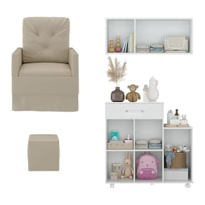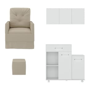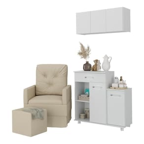 Poltrona De Amamentação Com Puff E Armário/balcão Multimóveis Mp4212 Branco/bege Branco/bege A Poltrona de Amamentação com Puff e Armário/Balcão Multimóveis MP4212 é a peça perfeita para mamães que desejam conforto e funcionalidade durante os momentos preciosos de amamentação. Produzida em madeira eucalipto, esta poltrona conta com molas reforçadas e um mecanismo de balanço suave, proporcionando relaxamento total. O assento possui densidade D23 e suporta até 110kg, enquanto o revestimento em tecido veludo (A cor branca é revestida em material sintético) adiciona um toque de elegância ao ambiente. Além disso, o puff incluso oferece apoio para as pernas e pés, promovendo ainda mais conforto. O balcão produzido em MDP com acabamento acetinado conta com 1 gaveta (com corrediças metálicas) e 2 portas espaçosas (puxadores em ABS com acabamento cromado), junto a um amplo armário aéreo de 3 portas, que se destaca pelo design moderno. Produtos com combinações perfeitas de praticidade e estilo para os momentos especiais com seu bebê. Conteúdo da Embalagem: 1 (uma) Poltrona 1 (um) Puff 1 (um) Balcão 1 (um) Armário Aéreo Kit Ferragem Manual de Montagem