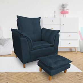 Poltrona de Amamentação com Puff Laura Veludo - Pallazio - Azul Marinho
