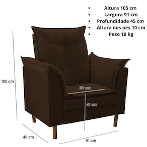 Altura: 105 cm Largura: 91 cm Profundidade: 45 cm Altura dos pés: 10 cm Altura do chão até o assento: 47 cm Largura encosto: 60 cm Altura encosto: 66 cm Largura assento: 50 cm Altura assento: 47 cm Peso: 18 Kg Peso Suportado: 100 Kg
