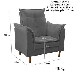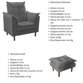 A Poltrona Confortável Bia possui estrutura em madeira de eucalipto e é revestida em suede, garantindo uma maciez inigualável ao toque. O puff, um componente essencial, oferece conforto adicional para os pés, tornando cada momento ainda mais agradável.