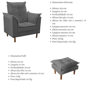 A Poltrona Confortável Liz possui estrutura em madeira de eucalipto e é revestida em suede, garantindo uma maciez inigualável ao toque. O puff, um componente essencial, oferece conforto adicional para os pés, tornando cada momento ainda mais agradável.