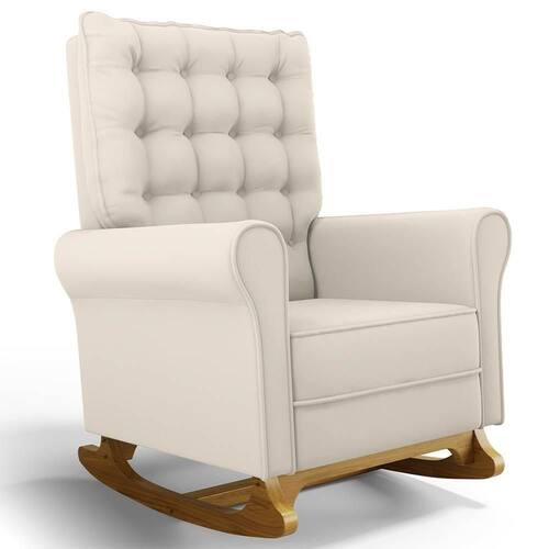 O móvel ideal para você que procura conforto, qualidade e sofisticação. Confira a Poltrona de Amamentação e Descanso Base Madeira Com Balanço Brenda G05 Veludo Creme, da Mpozenato!