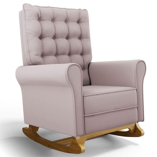 O móvel ideal para você que procura conforto, qualidade e sofisticação. Confira a Poltrona de Amamentação e Descanso Base Madeira Com Balanço Brenda G05 Veludo Rosê, da Mpozenato!