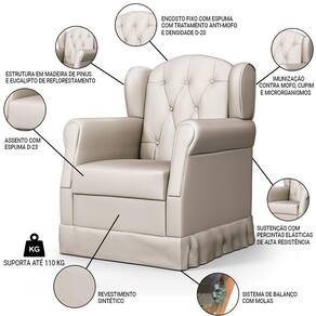 Diferenciais: - Estrutura de madeira com imunização contra mofo, cupim e microrganismos. - Travamento de estrutura com grampos em aço galvanizado. - Sustentação do assento e encosto com percintas elásticas. - Base com balanço. - Acompanha Puff.