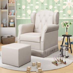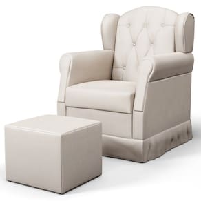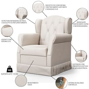 Poltrona de Amamentação e Descanso com Balanço e Puff Lucy P04 Suede Bege - Mpozenato