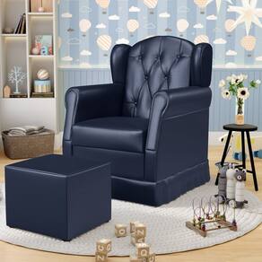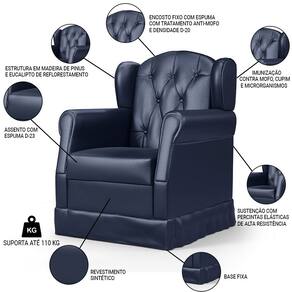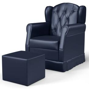 Poltrona de Amamentação e Descanso Fixa com Puff Lucy P04 Sintético Azul Marinho - Mpozenato