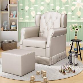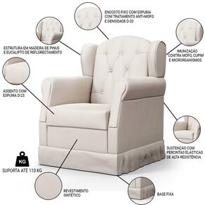 Poltrona de Amamentação e Descanso Fixa com Puff Lucy P04 Sintético Bege - Mpozenato