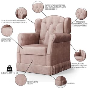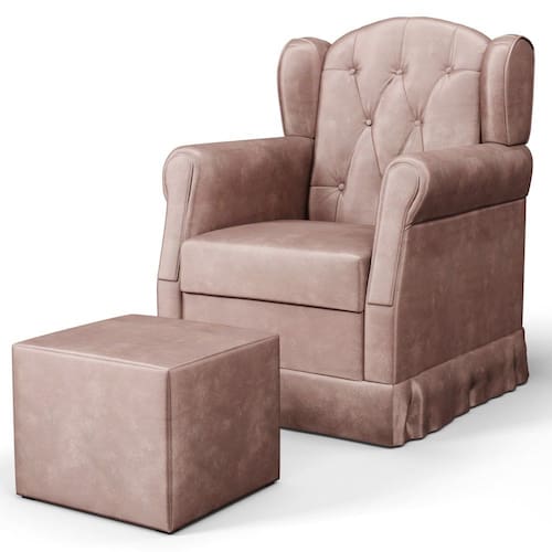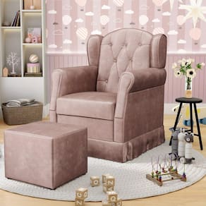 Poltrona de Amamentação e Descanso Fixa com Puff Lucy P04 Veludo Rosê - Mpozenato
