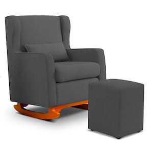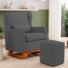 Poltrona de Amamentação e Descanso Zoe com Base Balanço e Puff Linho Cinza - Desk Design
