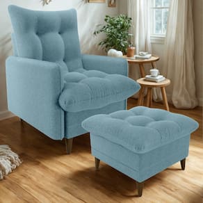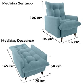 Madeira de Eucalipto de Reflorestamento, Espuma, Tecido BoucléConjunto Poltrona com Puff Montreal combina conforto e funcionalidade, composto por duas peças ideais para momentos de descanso ou amamentação. A poltrona conta com sistema reclinável de dois estágios (modo leitura e descanso), estrutura em madeira de Eucalipto de reflorestamento, reforçado com precintas elásticas. O assento e encosto são preenchidos com uma combinação de fibra siliconada e flocos de espuma (assim como o Puff), enquanto as braças são em espuma D23, o revestimento em tecido Bouclé (macio, encorpado, com visual moderno e aconchegante). Os pés também em madeira completam, suportando até 110 kg por assento. Este móvel chegará em sua casa separado em 01 volume.