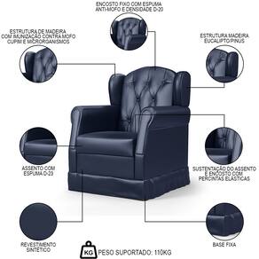 A Poltrona de Amamentação Fixa Letícia Sintético Azul Marinho - Phoenix Baby é a escolha perfeita para as mamães que buscam conforto e praticidade durante a amamentação. Fabricada com madeira de eucalipto de reflorestamento, ela é resistente e durável, além de ser ecologicamente correta. A poltrona conta com percintas elásticas, que oferecem maior conforto e durabilidade, e sua estrutura de madeira é imunizada contra mofo, cupim e microrganismos, garantindo que ela dure por muito tempo. Com um design moderno e elegante, a Poltrona de Amamentação Fixa Letícia é a escolha perfeita para qualquer ambiente, seja no quarto do bebê, na sala de estar ou em qualquer outro cômodo. Invista em conforto e qualidade para você e seu bebê com a Poltrona de Amamentação Fixa Letícia. Compre já!