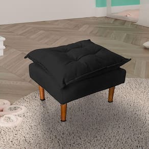 Material dos Pés: Os pés da poltrona e do puff também são feitos de Madeira de Eucalipto, garantindo estabilidade e beleza ao conjunto.