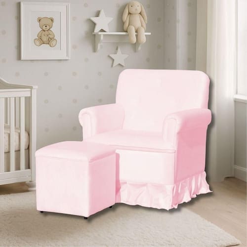 Poltrona De Amamentação Mamãe Meg Balanço E Puff Suede Rosê