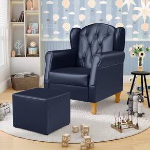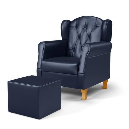 Poltrona De Amamentação Pés Madeira E Puff Lucy P04 Sintético Azul Marinho - Mpozenato