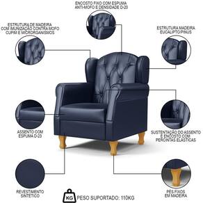 A Poltrona de Amamentação Pés Madeira e Puff Lucy P04 Sintético Azul Marinho Mpozenato é a escolha ideal para as mamães que buscam conforto, beleza e qualidade. Ela possui uma estrutura de madeira de reflorestamento com imunização contra mofo, cupim e microrganismos, garantindo maior durabilidade e resistência. A sustentação do assento e encosto é feita com percintas elásticas que proporcionam mais maciez e ergonomia. O tecido é de alta qualidade e espuma macia, que proporcionam um toque suave e aconchegante nos assentos, braços e encosto. A Poltrona possui estrutura firme e segura pois é produzida com pés de madeira para fixação na base. Além disso, vem com um puff para apoiar os pés e relaxar. Ela está disponível em para você escolher a que mais combina com o seu estilo. Não perca essa oportunidade de ter uma Poltrona Amamentação e Descanso na sua casa. Você vai se surpreender com o conforto e a qualidade dessa poltrona. Adquira já a sua!
