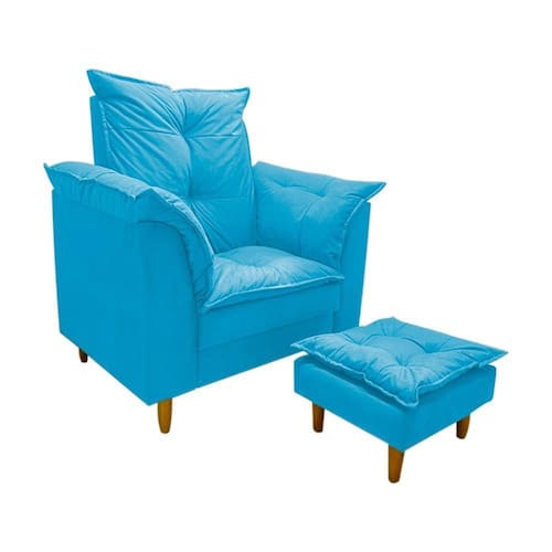 Poltrona De Amamentação + Puff Maite Pés De Madeira - Dritex Cor:suede Azul Tiffany