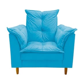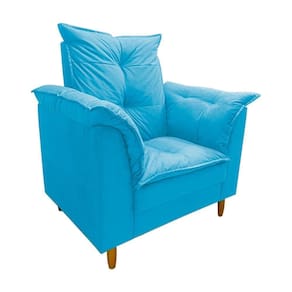 Poltrona De Amamentação + Puff Maite Pés De Madeira Dritex suede Azul Tiffany