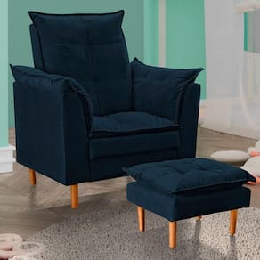 A Poltrona Confortável Melina possui estrutura em madeira de eucalipto e é revestida em suede, garantindo uma maciez inigualável ao toque. O puff, um componente essencial, oferece conforto adicional para os pés, tornando cada momento ainda mais agradável.