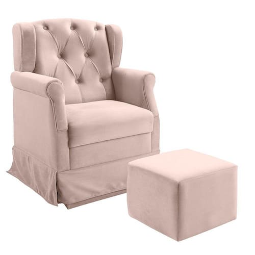 Poltrona de Amamentação Ternura Balanço + Puff - Veludo - Rosa