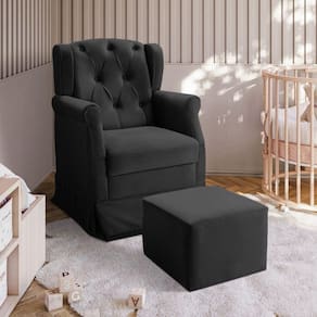 Poltrona De Balanço Amamentação Ternura Puff Veludo Preto Star Confort