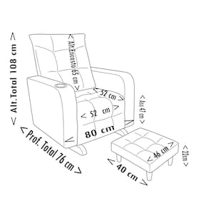 Acompanha puff estofado, pensado para auxiliar no relaxamento das pernas e proporcionar ainda mais bem-estar.
