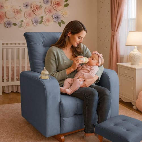 A poltrona de amamentar foi desenvolvida para oferecer conforto, praticidade e segurança durante os momentos mais importantes entre mãe e bebê. Produzida em tecido suede liso de alta durabilidade, seu design elegante com pés de madeira em balanço proporciona uma experiência aconchegante, ideal para amamentação, descanso ou leitura.