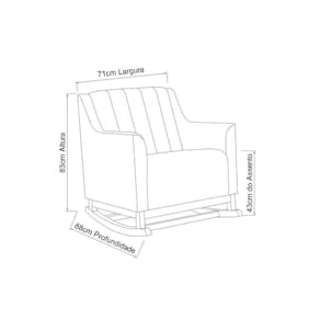 Poltrona Veveta ela é linda e charmosa ideal para vários momentos como amamentar, balançar, decorar ou simplesmente relaxar. Tenha uma em sua casa e sinta o aconchego que ela trará ao seu ambiente. Conforto na funcionalidade e no acabamento. Acompanha Almofadas extras: Não Acompanha Puff: Não Almofada do assento: Não Possui Almofada do encosto: Não Possui Altura do assento até o chão: 45 Altura do Encosto: 40 Ambiente Principal: Quarto de Bebê Cor: Mel/Bege Cor do Produto: Mel/Bege Design Assinado: Não Enchimento do Braço: Espuma D-26 Encosto para a Cabeça: Não Estampado: Não Extensível: Não Itens Inclusos: 1 Poltrona Manual de Montagem e Instalação: https://product-hub-prd.madeiramadeira.com.br/836888/documents/a3cb835b-68b2-4b58-8f42-0e7bef0f99f41357232manualdemontagem.pdf Material do Braço: Tecido Material dos Pés: Pinus Modelo de Poltrona: Balanço Necessita Montagem: Não Origem do Produto: Nacional Peso: 17.5 Possui Percintas Elásticas: Não Possui Pés: Suspenso Possui Rodízio: Não Recomendações de Uso, Manutenção e Limpeza: Pano levemente úmido Suporta Até (kg): 130 Tecido Predominante: Linho Tipo de Assento: Fixo Tipo de Encosto: Fixo Tipo de Poltrona: Amamentação Ean: 7909903350621