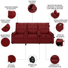 Conheça a Poltrona de Cinema Reclinável 3 Lugares Baú USB Mallie FH9 PU Vermelho, da Mpozenato projetada para oferecer o máximo conforto e ter seu próprio cinema em casa.