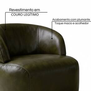 Informações Adicionais: Imagens ilustrativas, cores podem variar. Uso interno. Verifique embalagem no recebimento. Montagem por conta do cliente. Não realizamos subida. Garantia: 90 dias. Acompanha Almofadas extras: Não Acompanha Puff: Não Almofada do assento: Fixa Almofada do encosto: Não Possui Altura do assento até o chão: 45 cm Altura do Encosto: 35 cm Ambiente Principal: Sala de Estar codigo_ean: 7900288241566 Cor: Musgo Cor do Produto: Musgo Design Assinado: Não Enchimento do Assento: Espuma D-33 Enchimento do Braço: Espuma D-18 Encosto para a Cabeça: Não Estampado: Não Extensível: Não Firmeza do Assento: Médio Informações Complementares: Evitar exposição direta à luz solar, limpar com escova com pano úmido semanalmente, não utilizar produtos químicos, removedores, alvejantes, etc. Evite exercer pressão excessiva sobre determinada partes do estofado, não utilizar para limpeza equipamentos Itens Inclusos: 1 Poltrona Linha ou Coleção: Luna Marca: LEME MOVELARIA Material do Braço: COURO Modelo de Poltrona: Giratório Necessita Montagem: Não Origem do Produto: Nacional Peso: 15 kg Possui Percintas Elásticas: Sim Possui Pés: Não Recomendações de Uso, Manutenção e Limpeza: Pano limpo e levemente úmido Suporta Até (kg): 100 kg Tecido Predominante: Couro Tipo de Assento: Fixo Tipo de Encosto: Fixo Tipo de Espuma do Assento: Espuma Convencional Tipo de Poltrona: Decorativa