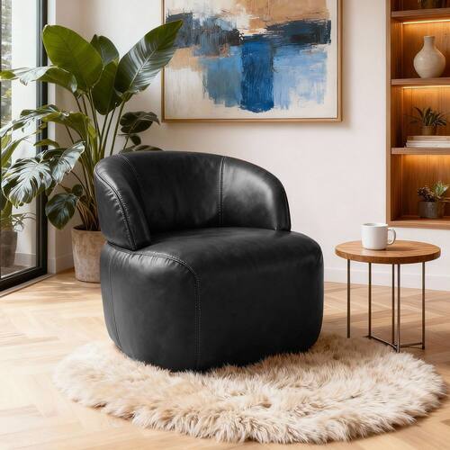A Poltrona Luna foi projetada com uma estética moderna e acolhedora, destacando-se por seu design leve e orgânico. Ela é estofada com couro de alta qualidade, proporcionando um toque suave e agradável, além de grande conforto e durabilidade.