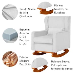 Perfeita para Amamentar, Descansar ou Relaxar. Seja no quarto do bebê, na sala ou no cantinho da leitura, essa poltrona é ideal para quem valoriza aconchego com estilo. O movimento de balanço suave ajuda acalmar seu bebê e também relaxa o corpo após um longo dia. A Paloma se adapta com facilidade, proporcionando um toque de elegância e bem-estar em qualquer espaço.