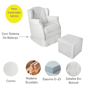 A poltrona de amamentação confortável foi projetada para oferecer conforto, com balanço suave e o puff garantem apoio total para os pés, reduzindo tensões e proporcionando relaxamento.