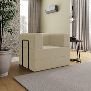 Com linhas retas e proporções compactas, a Poltrona na Caixa destaca-se pelo visual contemporâneo de inspiração industrial. Pés em metal garantem solidez e durabilidade, enquanto o formato versátil permite fácil ambientação em espaços integrados, como estúdios, lofts e salas menores. Um móvel inteligente para um estilo de vida dinâmico.