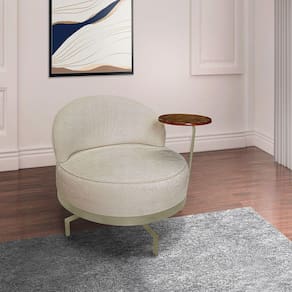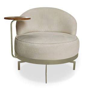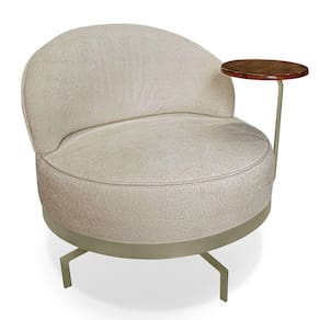 Poltrona Decorativa Andromeda Linho Bouclê Bege Base Giratória de Ferro - Pallazio