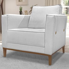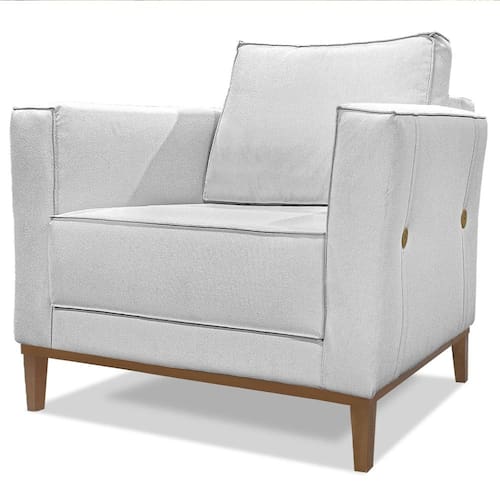Poltrona Decorativa Balli 1 Lugar Pes Madeira Linho Grigio Ezz - Bege
