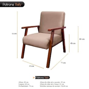 Dimensões e peso: - Comprimento: 60 cm - Profundidade: 70 cm - Altura: 86 cm - Interior do assento: 54 x 48 cm - Altura dos pés até o assento: 45 cm - Altura dos pés até o braço: 61 cm - Peso do produto: 9,800 kg.