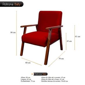 Poltrona Decorativa Bally Veludo Vermelho - WD Decor