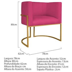 - Detalhes dos Pés: acompanha base de ferro, de alta resistência; Acompanha Almofadas extras: Não Acompanha Puff: Não Almofada do assento: Não Possui Almofada do encosto: Não Possui Altura do assento até o chão: 50 Altura do Encosto: 31 Altura dos Pés: 37.5 Ambiente Principal: Sala de Estar Cor: Pink/Dourado Cor do Produto: Pink/Dourado Design Assinado: Não Enchimento do Assento: Espuma D-18 Enchimento do Braço: Espuma D-18 Enchimento do Encosto: Espuma D-18 Encosto para a Cabeça: Não Estampado: Não Extensível: Não Firmeza do Assento: Firme Itens Inclusos: 1 Poltrona Linha ou Coleção: Munique Material do Braço: Madeira e espuma Material dos Pés: Metal Modelo de Poltrona: Fixo Necessita Montagem: Não Origem do Produto: Nacional Peso: 14 Possui Percintas Elásticas: Sim Possui Pés: 01 Possui Rodízio: Não Recomendações de Uso, Manutenção e Limpeza: Limpar com flanela limpa e seca. Não molhar o móvel e não expor em lugar úmido ou próximo de fontes de calor. Não usar produtos abrasivos. Resistente à Chuva: Não Suporta Até (kg): 120 Tecido Predominante: Suede Tipo de Assento: Fixo Tipo de Encosto: Fixo Tipo de Espuma do Assento: Espuma Convencional Tipo de Espuma do Encosto: Espuma Convencional Tipo de Poltrona: Decorativa Marca: Maranata Estofados Ean: 7909903458112